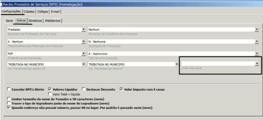 Algumas prefeituras estão solicitando o envio da série e sub-série para controle das NFSe. Contamos com essa opção no sistema dentro do botão configurações NFSe.